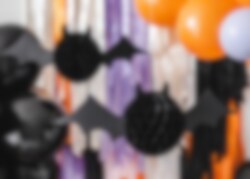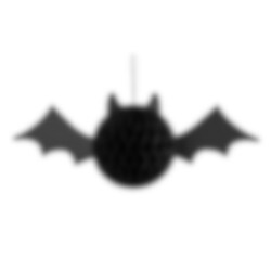 Denna dekorativa fladdermus har en rund kropp i svart honeycomb-papper och breda vingar i kraftigt papper. En perfekt dekoration att hänga i taket, vid entrén eller över ett dukat bord.