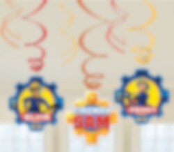 Hängande dekorationer i 6 delar med häftiga Brandman Sam motiv. Dekorera kalasrummet med dessa för att skapa en rolig stämning. 3 st. swirls är ca 60 cm långa och 3 st. dekorationer är ca 45 cm långa.