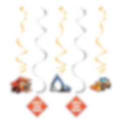 5 st. hängande dekorationer med fina motiv i temat Construction. Tre av dekorationerna är 76 cm långa och två 99 cm långa.