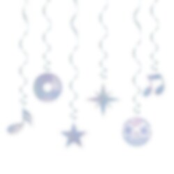 Låt dekorationerna sväva lika elegant som dansstegen på discogolvet med dessa glittrande hängdekorationer. Med motiv som stjärnor, noter, skivor och discokulor i glänsande folie skapar de en härlig känsla av glamour och rörelse i rummet.