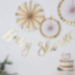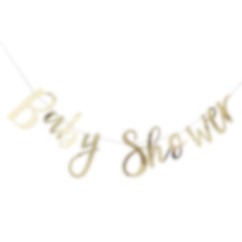 Tjusig guldfolierad girlang med texten Baby shower. Häng upp denna på väggen när det är dags för Babyshowerfest. Girlangen är av papper och är ca 150 cm lång.