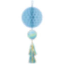 Hängande dekoration med honeycomb och tassels i blå och guldfolierade färger samt ett motiv med texten "Oh Baby!" i guldfolie. En vacker dekoration att ha med under babyshowern. Dekorationen är ca 75 cm stor inklusive tassels.
