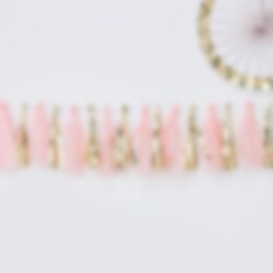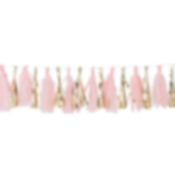 Söt girlang med olika tofsar i rosa och guld. En jättesöt dekoration till Babyshowerfesten. Girlangen har totalt 16 st. tofsar och är ca 2 meter lång.