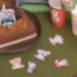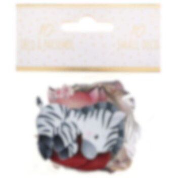Lyxig konfetti i trä med motiv av söta små safaridjur. Konfettin är 5 x 5 cm stora och du får sammanlagt 10 stycken i en påse.