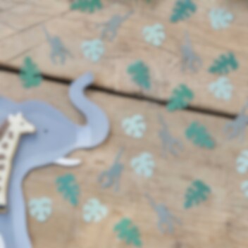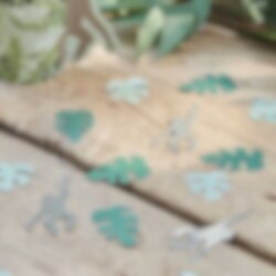 Snyggt konfetti med apor och gröna palmblad i papper. Pynta bordet med detta när det är dags för djungelkalas. Matchar perfekt med våra andra tillhörande artiklar i temat Let's Go Wild! Förpackningen innehåller ca 13 gram.