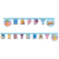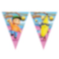Färgsprakande flaggirlang av papper med motiv från Stumble Guys. En perfekt dekoration för att skapa en rolig stämning på kalaset! Girlangen är ca 2,3 meter lång och varje vimpel är ca 24,5 cm hög.