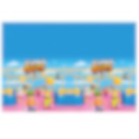 Bordsduk av plast med färgglada motiv från Stumble Guys. Duken är 120 x 180 cm stor.