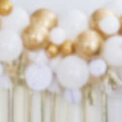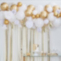 8 st. tassels i vit och guldfolie med tillhörande ballongtejp som är 4 meter lång.