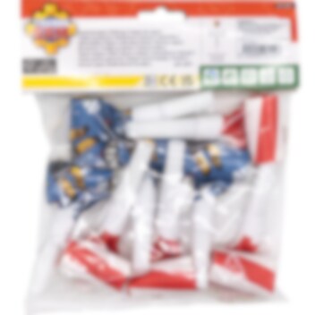 8 st. festliga kalastutor med motiv från serien Brandman Sam. Kul överraskning till barnen på kalaset.