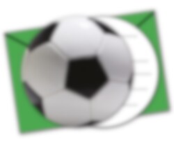 6 st. inbjudningskort formade som fotbollar. Korten är ca 10 x 10 cm stora och all eventuell text är på engelska. 6 st. gröna kuvert ingår.