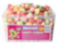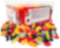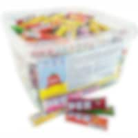 Godis med smak av banankola. Förpackningen innehåller 60 stycken. Total vikt 1,08 kg.