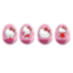Chokladägg med motiv av Hello Kitty som innehåller en överraskning. Skojigt att lägga i kalaspåsen innan kalaset för att överraska barnen. Chokladäggen innehåller ca 20 gram och säljs osorterade och styckvis.