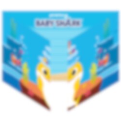 8 st. inbjudningskort med motiv av den gula hajen på framsidan från den kända barnlåten Baby Shark. Bjud in dina vänner på ett oförglömligt kalas med hjälp av dessa. Korten är ca 14 x 8,5 cm stora och har ingen text. Förpackningen inkluderar även 8 st. vita kuvert.