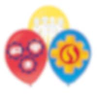 6 st. ballonger i färgerna röd, gul och mörkblå med olika motiv från temat Brandman Sam. Ballongerna blir ca 28 cm stora upplåsta och kan blåsas upp med luft eller helium.
