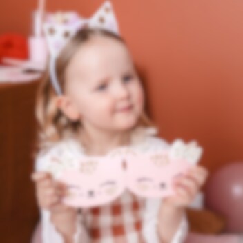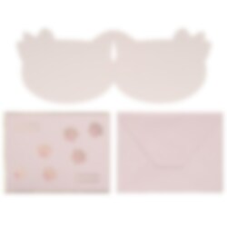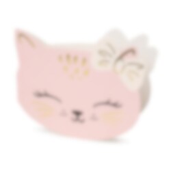 6 st. roliga inbjudningskort formade som rosa kattansikten, perfekta för att bjuda in dina vänner till ett roligt katt-kalas. Korten är 11 x 9 cm stora och har glänsande detaljer i guldfolie. Förpackningen inkluderar även 6 st. kuvert.