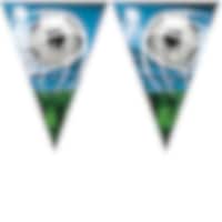 Snygg flaggirlang i papp med coola fotbollsmotiv. En fräck dekoration att pynta rummet med inför fotbollskalaset. Girlangen är ca 2,3 meter lång och varje vimpel är ca 24,5 cm hög.