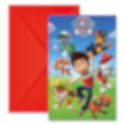 6 st. inbjudningskort med ett roligt motiv av Ryder och hundgänget från Paw Patrol. Korten är ca 9 x 14 cm stora och all text är på engelska. Förpackningen inkluderar även 8 st. röda kuvert.