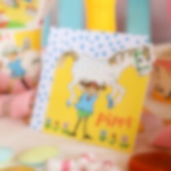 Bjud in till ett kalas fullt av bus och äventyr med Pippi Långstrump! Dessa färgglada inbjudningskort med Pippi och Lilla Gubben gör kalaset extra speciellt redan från start. Setet innehåller 8 kort och matchande kuvert – perfekt för att sprida glädje och bjuda in vänner på ett riktigt Pippi-kalas!