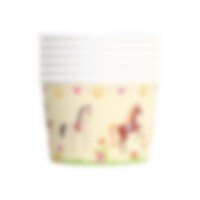 Bjud på glass eller andra godsaker i dessa underbara bägare med hästmotiv. Designen med färgglada hästar, hjärtan, blommor och hästskor för tankarna till en solig dag på landet och passar perfekt till barnkalas med stalltema. De rymmer 150 ml och är 5,4 cm höga.