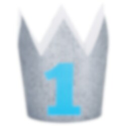 Kalashatt som föreställer en krona i silverglitter samt med motiv av siffran 1 i blå färg. Denna fina krona kan bäras av födelsedagsbarnet under 1-års kalaset. Kronan är ca 10 cm hög och sätts på plats med hjälp av ett resårband.