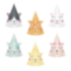 Låt kalasgästerna förvandlas till festliga små katter med dessa söta kalashattar. Med sex olika kattmotiv och charmiga detaljer blir de en rolig och lekfull accessoar till firandet. Hattarna är 15 cm höga och sitter bekvämt på plats, perfekta för ett kalas där bus och skratt står i centrum.