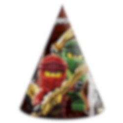 6 st. kalashattar med coolt motiv av karaktärerna från LEGO Ninjago. Lägg fram dessa på bordet till dina vänner inför kalaset med LEGO Ninjago som tema. Hattarna är tillverkade av FSC-märkt papper, är ca 19 cm höga och sätts på plats med hjälp av ett resårband.