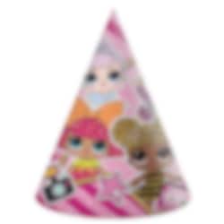6 st. kalashattar i rosa nyanser med motiv av det coola Glitterati gänget från Lol Surprise. Ett roligt komplement till ditt kalas med LOL Surprise som tema. Hattarna är ca 19 cm höga och sätts på plats med hjälp av ett resårband.