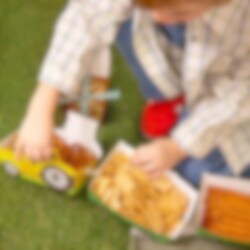 Fyll boxarna med chips, popcorn, godis eller andra snacks och låt dem bli en dekorativ del av dukningen. Boxarna är tillverkade av papper. Traktorn mäter 16 x 10 x 4,5 cm.