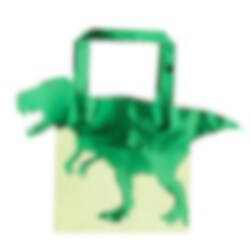 5 st. ljusgröna kalaspåsar av papper med motiv av en dinosaurie i grönfolie. Fyll påsarna med spännande godis och överraskningar och ge dem sedan till vännerna under kalaset. Påsarna är ca 20 x 15 cm stora.
