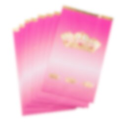 8 stycken påsar av papper med rosa ombre färg och guldfolierade prinsesskronor som är perfekta att använda till godis och andra överraskningar på kalaset. Påsarna är 20 x 12 cm stora.