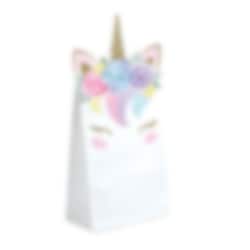 8 st. kalaspåsar tillverkade av papper med enhörningsmotiv i pastellfärger. Fyll påsarna med godis och någon överraskning och ge dem sedan till gästerna under babyshowern. Påsarna är ca 11,5 x 20 cm stora.