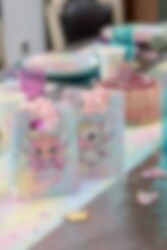 Färgsprakande bordslöpare med mönster av en gullig enhörning och små detaljer så som hjärtan och stjärnor. Fin att duka bordet med till ditt barnkalas med enhörningstema. Bordslöparen är i materialet polyester och är ca 30 cm bred och 5 meter lång.