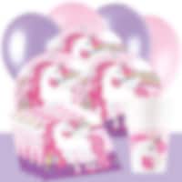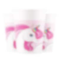 4 st. kalaspåsar av papper med en vit enhörning med rosa man och ett färgglatt regnbågsmotiv mot ljusrosa bakgrund. Perfekta att fylla med godis, små leksaker eller överraskningar som barnen kan ta med sig hem efter kalaset.