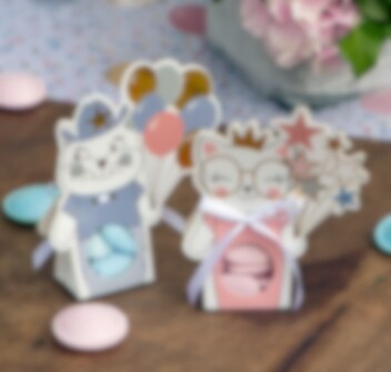 6 st. små askar i vit och rosa färg med motiv av en katt som är redo för ett kalas. Fyll dessa med något gott och placera ut dem vid bordsplatsen som en fin gåva till dina gäster när det är dags för kalas med kattema.