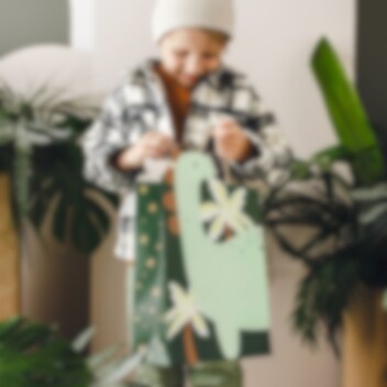 Presentpåse som sticker ut med sin vackra design i dinosaurie-tema. Påsen har två handtag, är tillverkad av papper och är 10 x 37 x 24 cm stor.