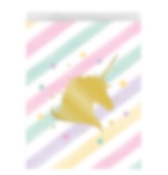 10 st. kalaspåsar i papper med fina färger och en enhörning i guldfolie på framsidan. Fyll påsarna med godis och överraskningar och ge dem sedan till vännerna under kalaset.