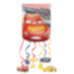 En enklare pinata med motiv av blixten i Disney Bilar 3. Fyll pinatan med olika godisar och små leksaker. Den här produkten är en pinata med snören och öppnas av att man drar i rätt snöre så faller alla överraskningar ut. Pinatan säljs utan innehåll och är ca 21 x 27 cm stor.