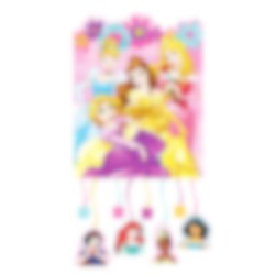 En enklare pinata med fina motiv av dom olika prinsessorna från filmen Disney Prinsessor. Fyll pinatan med olika godisar och små leksaker. Den här pinatan är en pinata med snören och öppnas av att man drar i rätt snöre så faller alla överraskningar ut. Pinatan säljs utan innehåll och är ca 21 x 27 cm stor.