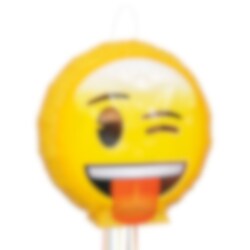 Denna roliga emoji-piñata blir ett glatt inslag på kalaset! Med sitt busiga uttryck och färgglada snören undertill blir den både en dekoration och en spännande lek. Barnen turas om att dra i snörena – men bara ett öppnar den och släpper ut godsakerna. Spänning och skratt utlovas!