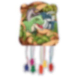 Ta kalaset tillbaka till dinosauriernas tid med denna tuffa dinosaurie-piñata! Tillverkad av tjock papp och prydd med häftiga motiv på båda sidor. De hängande snörena låter barnen dra fram skatten – en prisvärd favorit för alla små dinosaurieentusiaster!