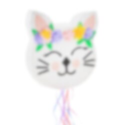Vacker pinata formad som ett katthuvud dekorerat med blommor. En Pinata är en rolig överraskning på varje kalas och den kan fyllas med både godis och små leksaker. Pinatan är ca 33 x 35 x 7,5 cm stor.