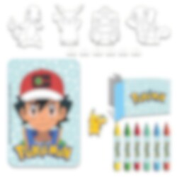 Pokémon ritset i 24 delar är ett kreativt och underhållande set för alla små Pokémon-fans. Varje set innehåller 6 färgkritor, 6 pappfigurer att måla, 6 stickers av Pikachu och 6 anteckningsböcker.