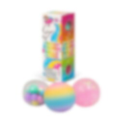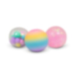 Kläm, lek och dröm dig bort till en magisk värld med dessa härliga squeeze-bollar i enhörningstema! De mjuka bollarna skimrar i vackra pastellfärger och är både roliga och avslappnande att krama. Bollarna säljs i 3-pack och är härligt mjuka att klämma på.