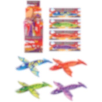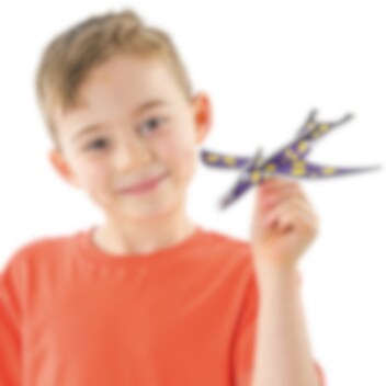 Bygg din egen flygande Dinosaurie. Jätterolig överraskning till kalaspåsen eller till dig själv. Anordna en rolig "vilken dinosaurie flyger längst" - tävling. Blir det en fin flygning eller kraschlandning? Dinosaurien finns i fyra olika utförande och säljs styckvis och osorterat. Glidflygaren blir ca 17 x 12 cm när den är ihopsatt.