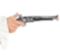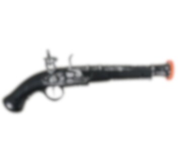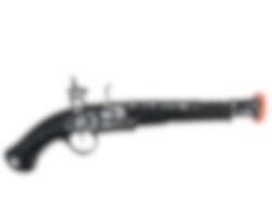 Tuff pistol av plast som du kan ha till din pirat maskeraddräkt. Dra hanen mot dig för att ladda pistolen och tryck sedan på avtryckaren. Pistolen är ca 35 cm stor.