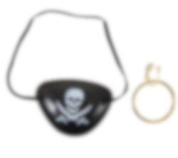 Coolt piratset som innehåller en ögonlapp och en guldring. Använd dessa till din pirat maskeraddräkt när det är piratkalas eller maskeradfest. Ögonlappen och guldringen passar de flesta vuxna och barn.