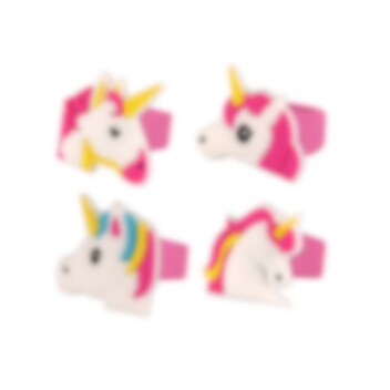 Superfina ringar i gummi med olika roliga motiv av enhörningar. En kul sak att lägga i kalaspåsen. Ringarna är ca 4,5 cm i diameter och säljs osorterade och styckvis. Passar de flesta barn.