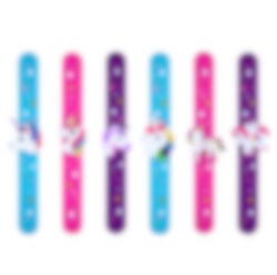 Gulliga snap-on armband med motiv av enhörningar i olika färger. En kul leksak att få i kalaspåsen under kalaset. Säljs osorterade och styckvis.