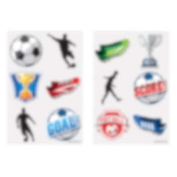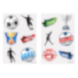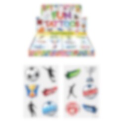 6 st. tatueringar med snygga fotbollsmotiv. Lägg några stycken i kalaspåsen när det är dags för fotbollskalas. Observera att tatueringarna finns i två olika ark och säljs styckvis och osorterade.