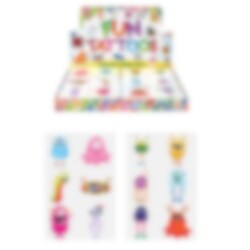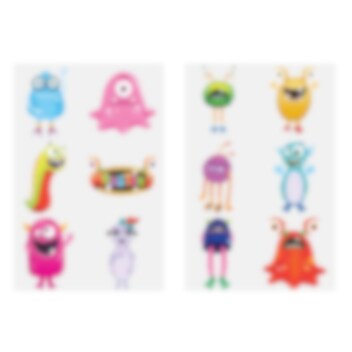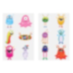 6 st. tatueringar med motiv av gulliga monster i roliga färger. Kul att ha med i kalaspåsarna som kompisarna sedan får under kalaset. Observera att tatueringarna finns på två olika ark och säljs styckvis och osorterade.